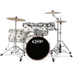 PDP X7 Series drums are finished in 8 stage-stealing sparkle lacquer finishes (Blue Sparkle Fade, Gold to Black Sparkle Fade, Lime Green Sparkle, Orange Sparkle, Purple Sparkle Fade, Red to Black Burst, Silver to Black Sparkle Fade and White Pearlescent and 4 bold wraps (Blackout, Candy Apple, Midnight Blue and Silver Metallic). Features include all-maple shells, True-Pitch tuning, F.A.S.T. tom sizes, S.T.M. (Suspension Tom Mounts) and more. The 7-piece kit configurations include 7x8 8x10, 9x12, 12x14 14x16 toms, 18x22 bass drum and a matching wood 5x14 snare drum. Hardware and pedals sold separately.